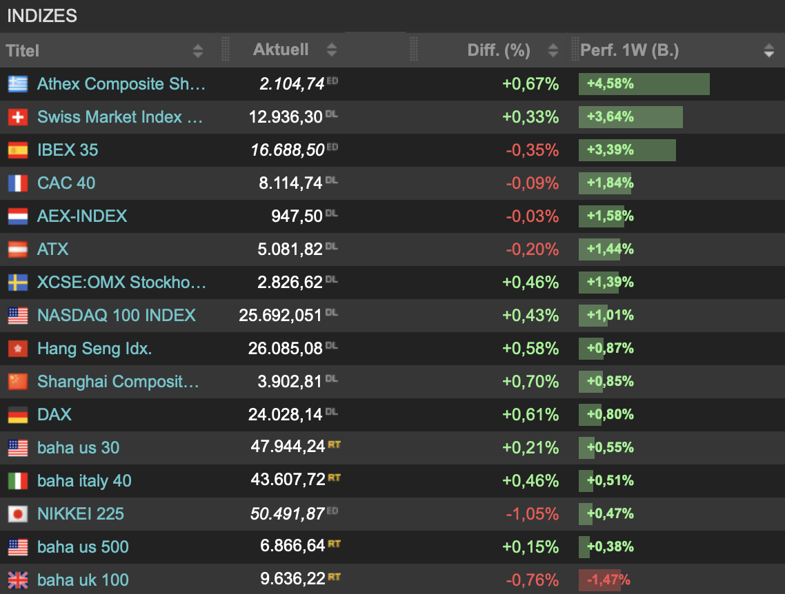 Hier hast Du den Blick auf die Indizes im Wochenfazit noch einmal parat: