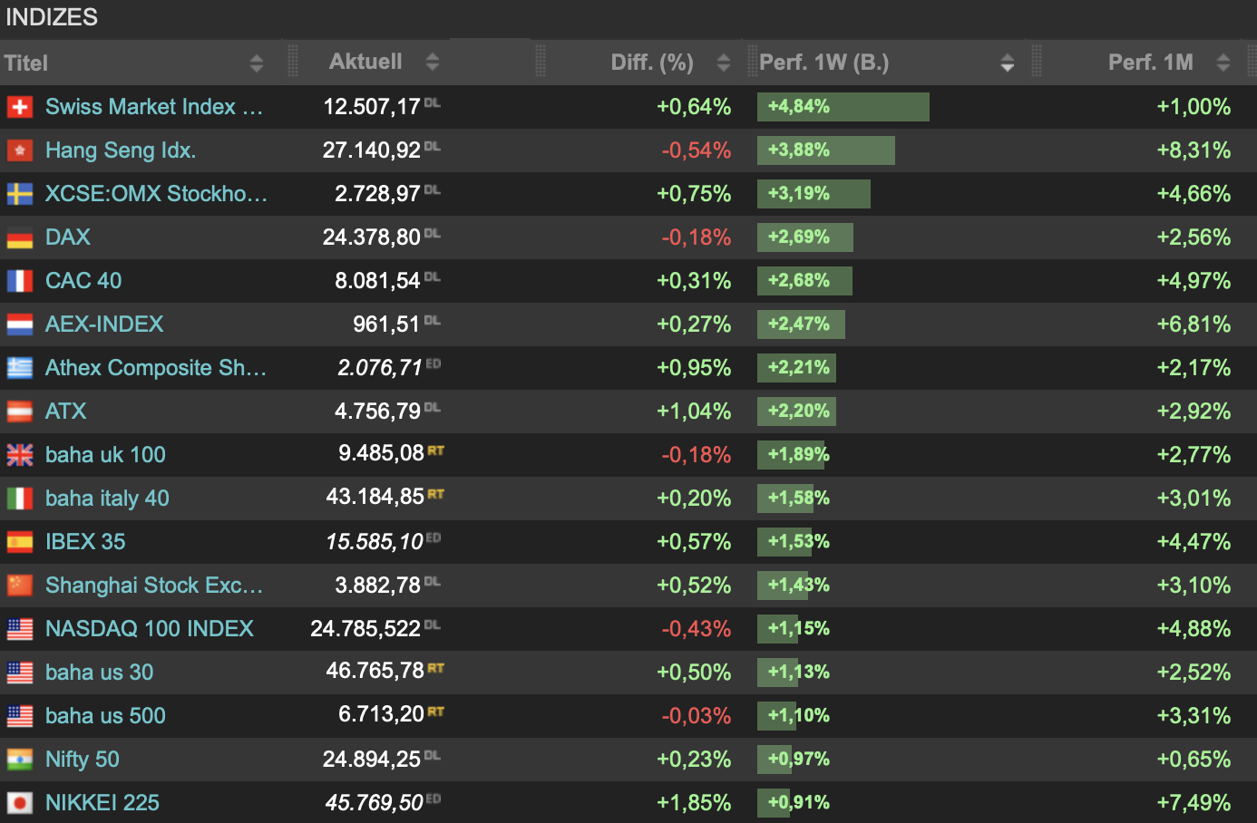 Hier hast Du den Blick auf die Indizes im Wochenfazit noch einmal parat:
