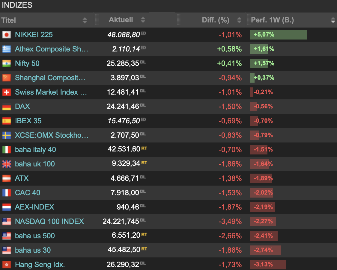 Hier hast Du den Blick auf die Indizes im Wochenfazit noch einmal parat: