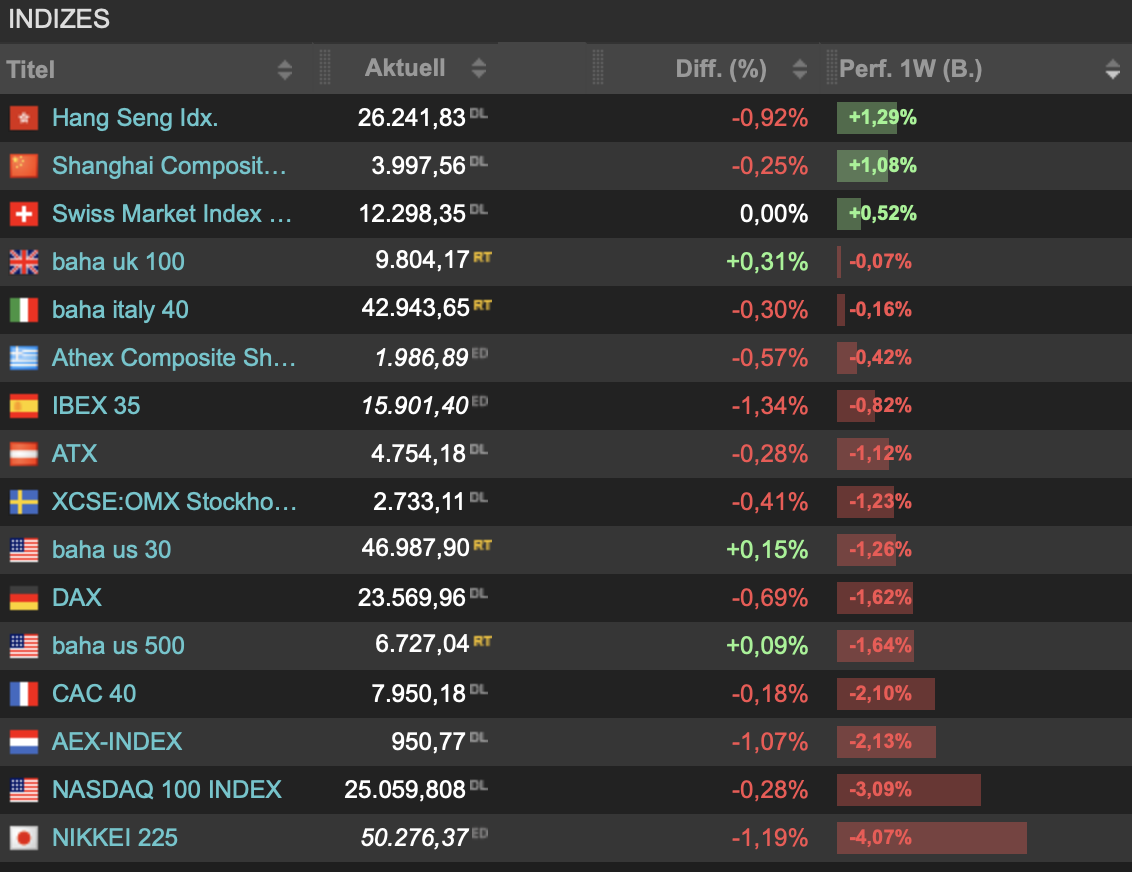 Hier hast Du den Blick auf die Indizes im Wochenfazit noch einmal parat: