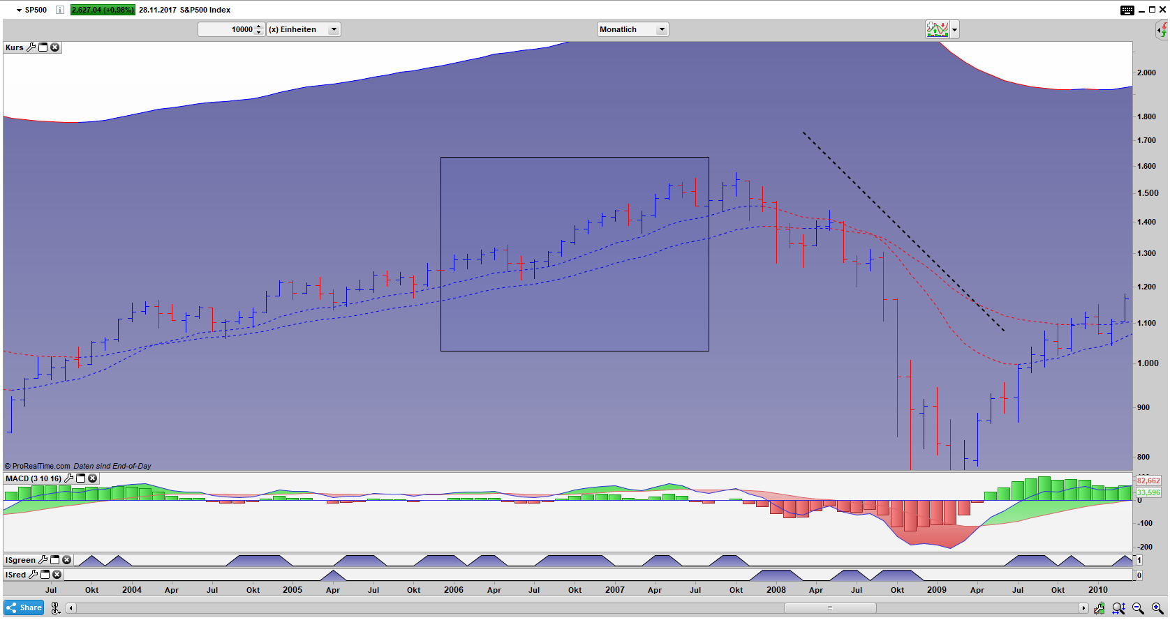 Kommen wir nun zu den entsprechenden SP500 Charts.
