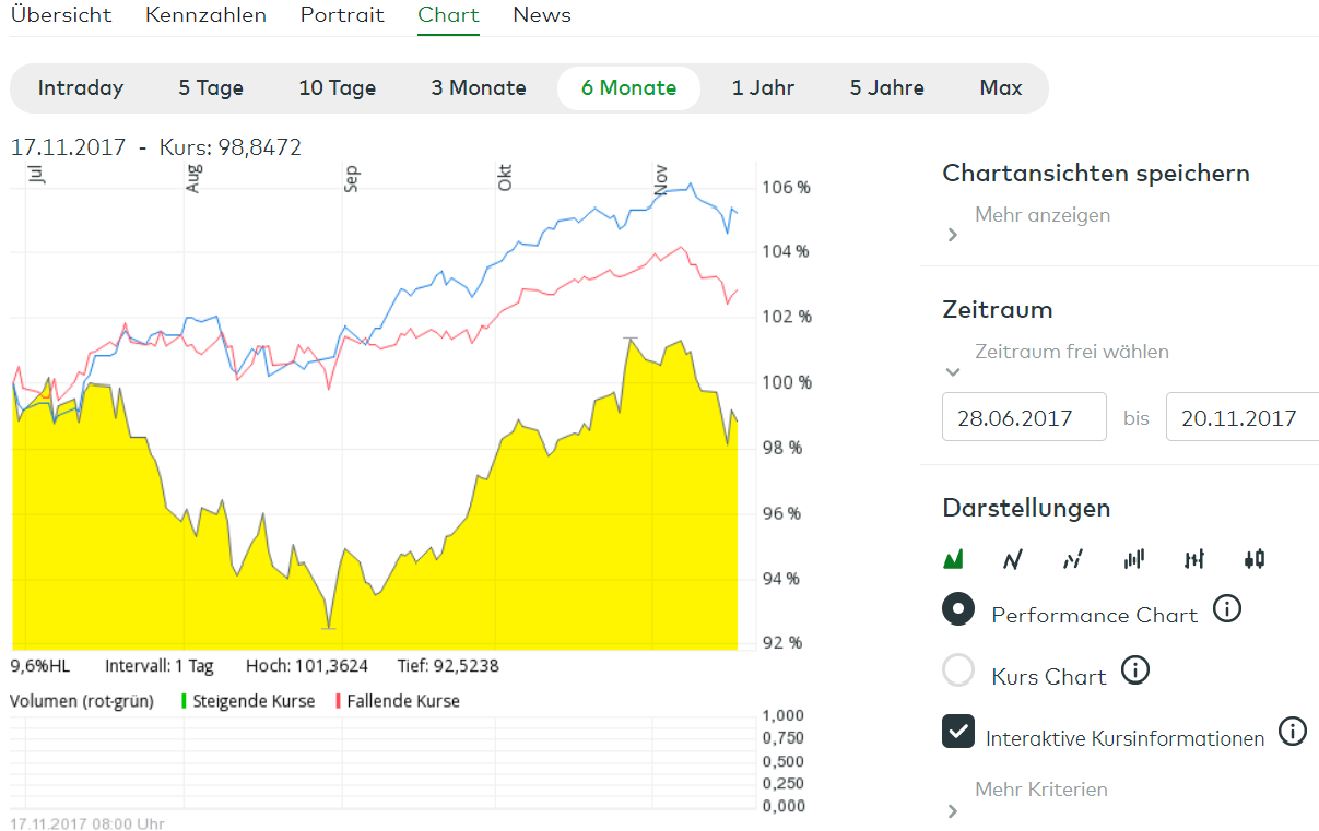 Leider ist die Datenreihe noch zu kurz, als dass es zu einem wirklichen Vergleich reicht. Die ersten Monate, seit dem der Fonds emittiert wurde sind jedoch nicht berauschend und vielleicht sogar ein Omen.