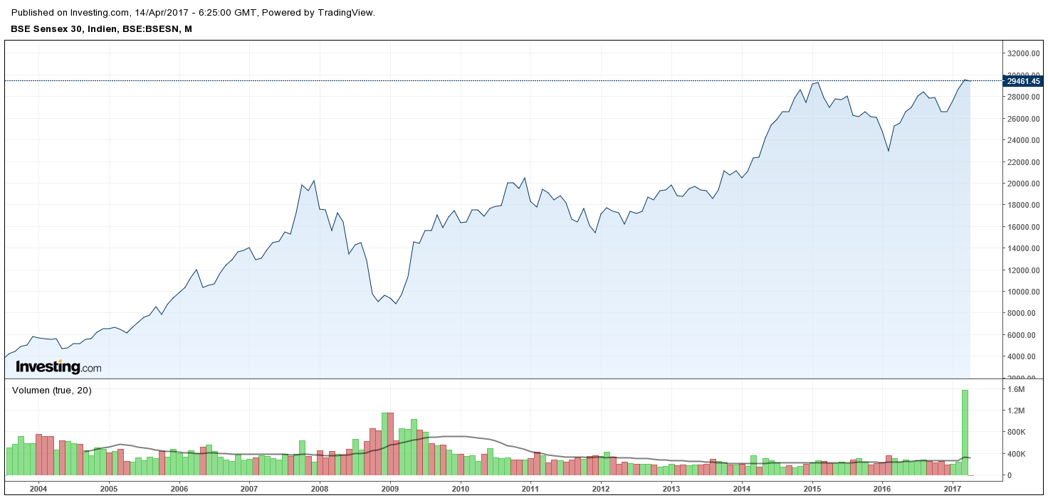 Der Aufwärtstrend ist im S&P BSE SENTEX Index weiterhin ungebrochen, was ein zusätzlicher Pluspunkt ist, der für Indien spricht. Solang das 2016er Tief hält kann man hier immer wieder nach Chancen Ausschau halten.