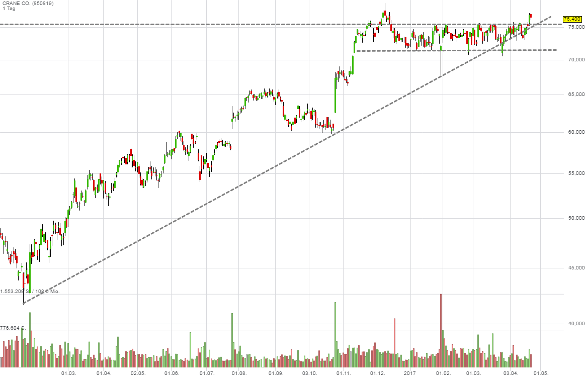 Ein derartiges Verhalten wie hier bei Crane macht es schwer, eine Aktie noch günstig zu kaufen. Denn oft lässt der Markt keine größeren Korrekturen für einen Einstieg zu. Aber genau das werte ich sehr positiv!
