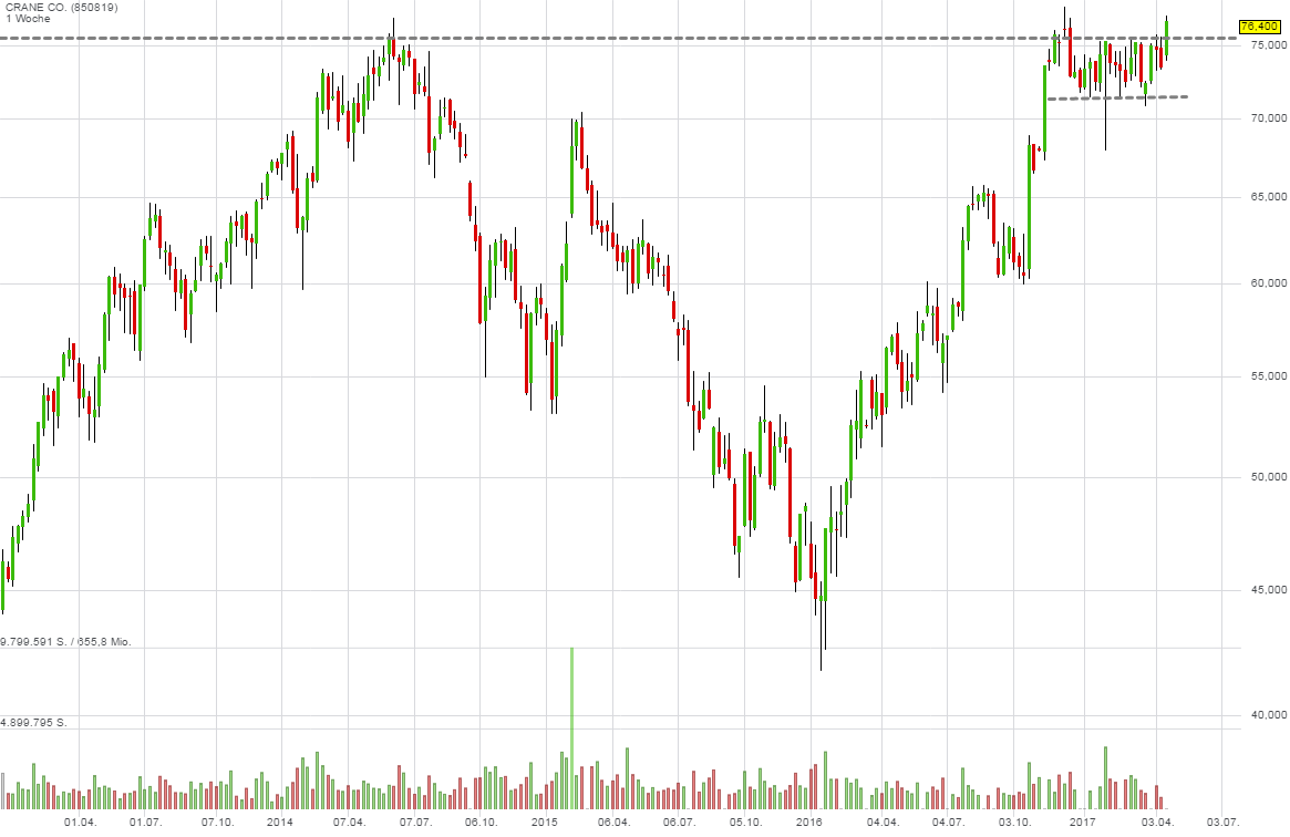 Crane mit Ausbruch wie aus dem Lehrbuch ist eine weitere charttechnische Analyse von mir als Trendfolger. Vielleicht sagt Ihnen das Unternehmen noch nichts. Daher habe ich einige Informationen für Sie im Vorfeld aufbereitet und werde dazu mein Setup und den Crane Ausbruch auf zwei Chartebenen hier genauer darstellen. Ähnlich wie bei meiner Analyse von XING vor wenigen Tagen (zum Beitrag ->).