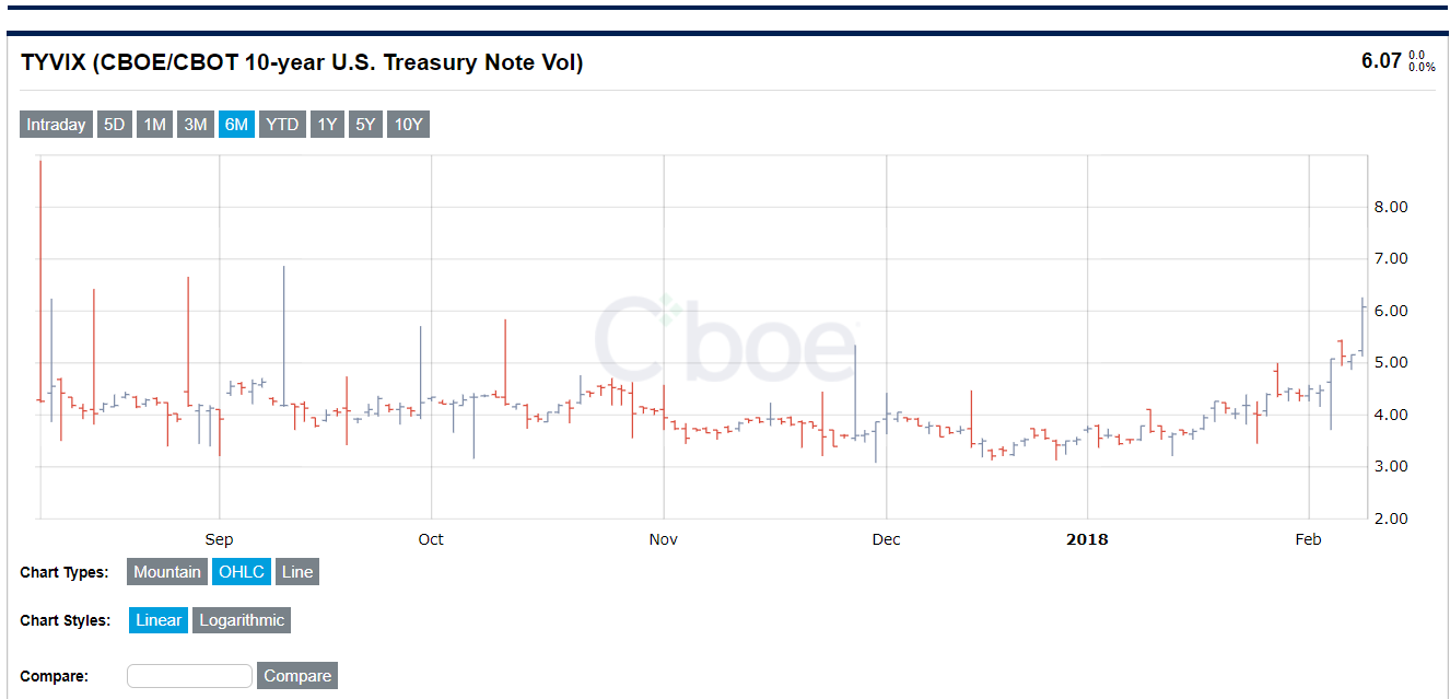 Der Fokus vieler Marktteilnehmer liegt noch auf dem VIX Index. Während die Aktien Index Volatilität in den letzten Tagen eine große Aufmerksamkeit erfahren hat, ist die Anleihen Volatilität noch gut versteckt. Dennoch sind erste Auswirkungen zu spüren. Zum Glück möchte man sagen, dass es hier keine für den Retailkunden zugängliche Produkte gibt, denn auch die Anleihen Volatilität befindet sich in einer Feedback Schleife.