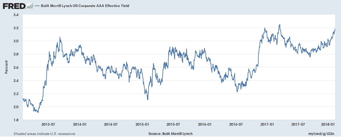 ![BofA Merrill Lynch US Corporate AAA Effective Yield BofA Merrill Lynch, BofA Merrill Lynch US Corporate AAA Effective Yield [BAMLC0A1CAAAEY], retrieved from FRED, Federal Reserve Bank of St. Louis; https://fred.stlouisfed.org/series/BAMLC0A1CAAAEY, February 1, 2018.](https://trading-treff-de.b-cdn.net/wp-content/uploads/2018/02/fredgraph-BofA-Merrill-Lynch-US-Corporate-AAA-Effective-Yield-1024x412.png)