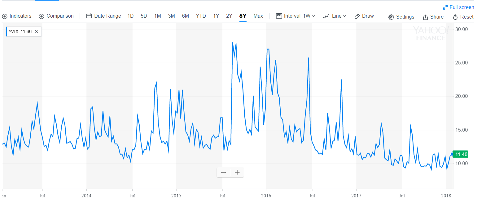 Im Moment befindet sich der VIX noch immer auf historisch niedrigen Niveau. Dieser Umstand macht die Lage so Brandgefährlich, denn würde sich der Volatilitäts Index auf einem höheren Terrain befinden wäre ein abrupter Anstieg weniger gefährlich.