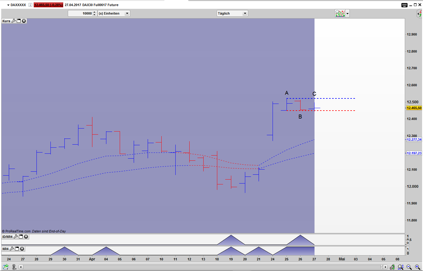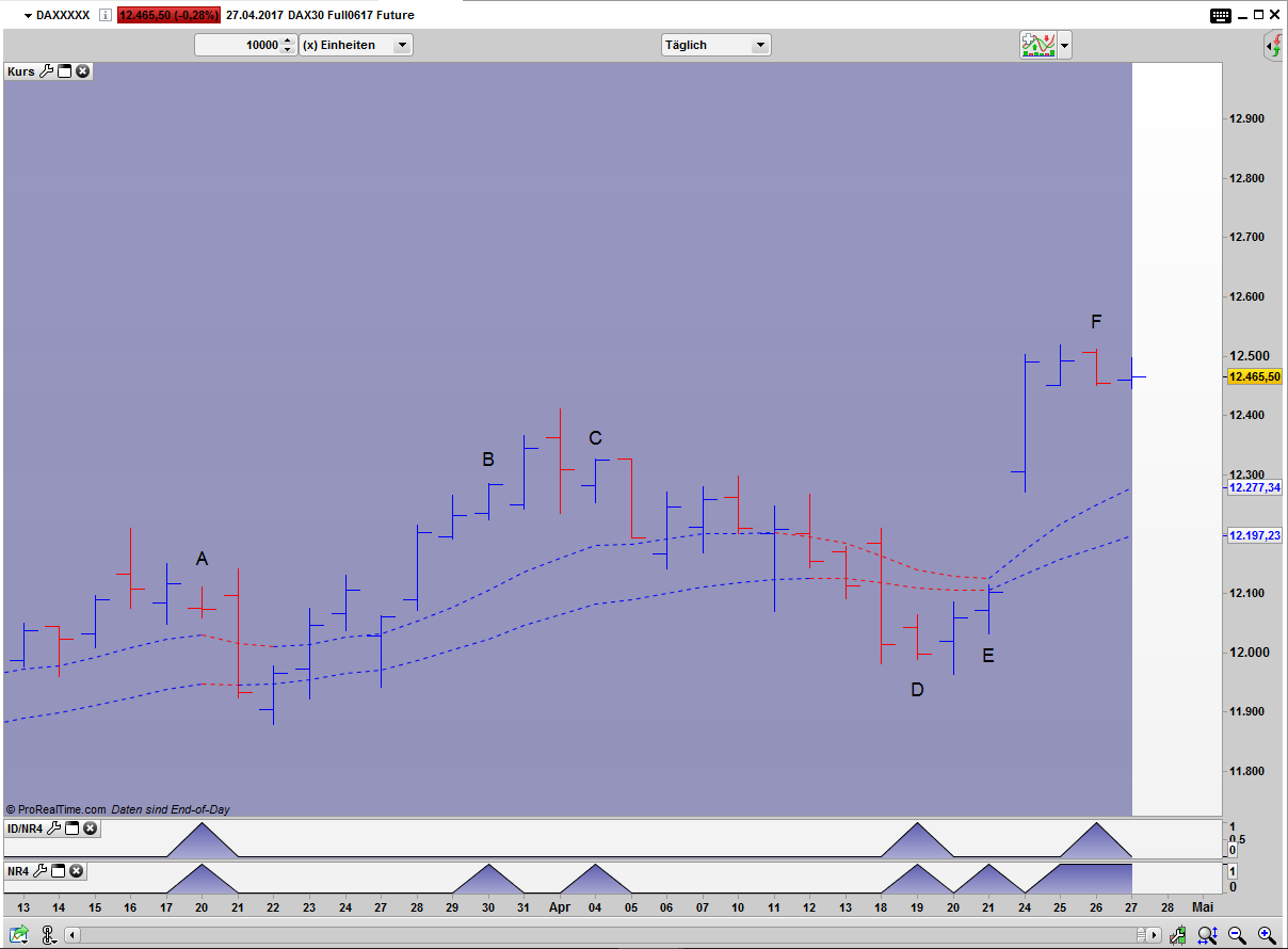 Das Hoch und das Tief liegen innerhalb der Vortages Spanne, vgl. dazu in Abb. 1 die Bars A, D und F