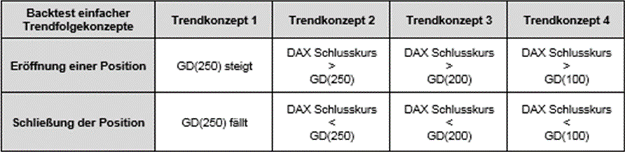 Performance einfacher Trendfolge-Strategien (Backtest)