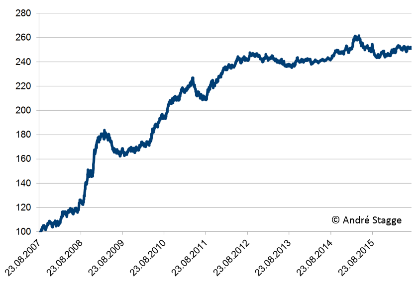 Sie finden diese Strategie und auch noch andere auf meiner Seite www.Andre-Stagge.de. Dort können Sie sich auch für meinen kostenlosen Newsletter eintragen. Jeden Monat stelle ich eine neue profitable Handelsstrategie vor.
