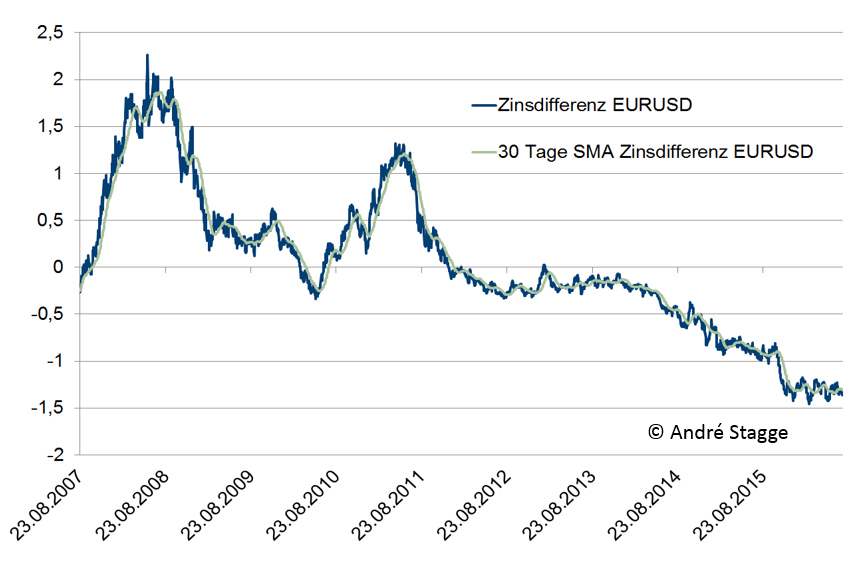 Schlecht ist bei der Zinsdifferenz EURUSD: